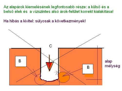 Az épületek többsége ma is sávalapozással készül. A leggyakoribb hibát az okozza, hogy – mint a cikk elején már említettem – az alaptömb helyének, az alapároknak a gépi, vagy akár kézi kiásásánál nem a műszakilag szakszerű, nem az indokoltan „sarkos” és alul sík felületet alakítottak ki. Az épület felépítésekor, az alapokra ható egyre növekvő súly hatására a betonalap alsó, domború végződése könnyebben belenyomódhat, – kissé megsüllyedve – a talajba. A hibás alapárok-kialakítás egyenes, törvényszerű eredménye, következménye: az alapsüllyedés hatása később árulkodóan és szinte beprogramozottan a különféle irányú repedésekben jelenik meg; és bár utólag, de az építés, az alapozás során elkövetett hibát elárulja.