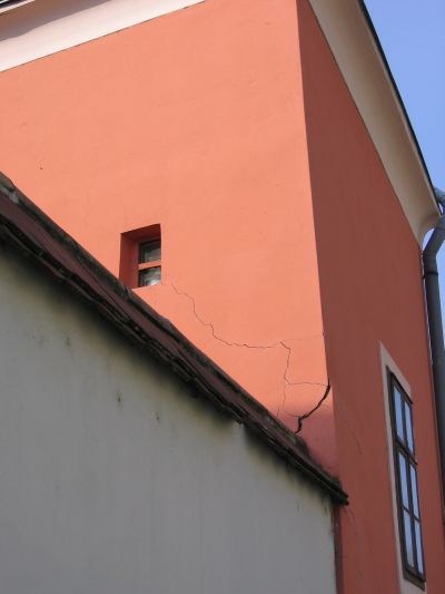 5. A régebbi épülethez később – esetleg sok évtizeddel később – hozzáépített épületszerkezet eltérő mozgása, esetleg süllyedése elhúzza, eltörheti a szomszédos szerkezeteket