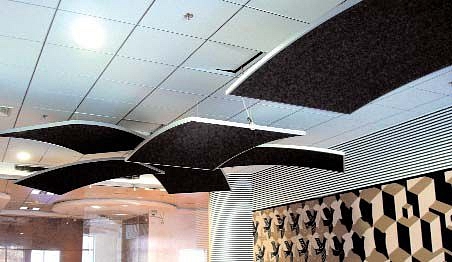 Az AMF széles álmennyezet választékkal járul hozzá a tervezők, építészek munkájához, hogy épületeik, terveik akusztikai szempontból is tökéletesek lehessenek. Szabad kezet kapnak a felületek kombinálásában, legyen szó sík vagy tört mennyezeti kialakításról, sima vagy lyuggatott felületek alkalmazásáról. Ellentétben a rég megszokottakkal, hogy csak a lyuggatott felületek jók akusztikai feladatokra, a hangelnyelés javítására ma már sima felületű, kiemelkedő hangelnyelési tulajdonságú álmennyezeti lapok is kaphatók. A cég akusztikus álmennyezeteivel az irodák, tárgyalótermek, eladóterek, előterek és folyosók, osztálytermek, mozik stb. helyiségei hangoptimális zónákra oszthatók.