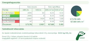A számítások eredményeként kapott értékelés tartalmazza az épület alapadatain kívül a határoló szerkezetek hőátbocsátási adatait, a különböző energiatípusokra lebontott energiafelhasználási adatokat, a széndioxid-kibocsátás mértékét, valamint egy részletes havi energiamérleget.