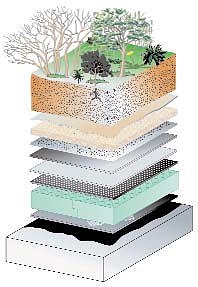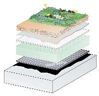 Példa extenzív zöldtető kialakításának rétegrendjére