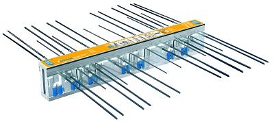 Ez azonban csak megfelelő, rozsdamentes betonacél vasalás alkalmazásával teljesül – ez a hőhídmegszakítás hatékonyságát alapvetően meghatározó tényező. A rozsdamentes betonacél alkalmazásának nemcsak a hosszú élettartam szempontjából van jelentősége, hanem hőtechnikailag is fontos szerepet játszik. Sokan nem tudják, hogy a rozsdamentes betonacél hővezetése négyszer(!) rosszabb, mint a hagyományos acélé: a rozsdamentes acél hővezetési tényezője λ=13,8 W/mK, míg a normál betonacélé: λ=48–55 W/mK. Mivel a hőhídmegszakító elemek hőszigetelő képességét döntően az alkalmazott vasalás – anyaga és mennyisége – határozza meg, könnyen belátható, hogy hagyományos betonacél használatával nem lehet számottevő javulást elérni az elemek hőtechnikai paramétereiben.