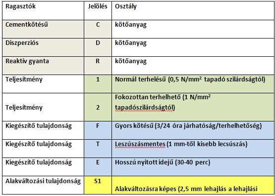 A ragasztó ajánlásakor csak ezeket a jelöléseket keressük a zsákokon, mert ezek az irányadóak, ezek műszaki tartalom tekintetében köteleznek!
