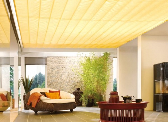 A tető alá otthonos és légies megjelenést varázsoló baldachin nagy méretű terek belső árnyékolására szolgál. A speciális, lángálló Trevira CS szövetekkel készülő árnyékoló 20 fokos dőlésig vezetőzsinórral működtethető. A keresztvezetők rozsdamentes, polírozott acélszálból készülnek.