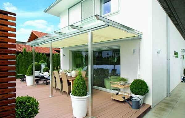 A nagy üvegfelületek fölé helyezhető külső télikert-árnyékoló megerősített szerkezetének köszönhetően akár 36 négyzetméteres felület lefedésére is képes egymezős szerkezettel.