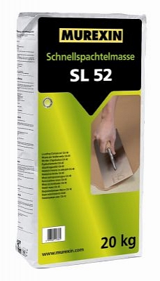 Murexin SL 52 Gyors aljzatkiegyenlítő, mely speciális cementtartalmú, por alakú, porzáscsökkentett, műgyantával javított, gyorskötésű, feszültségszegény önterülő. Kizárólag beltéri sima és egyenletes alapfelületek készítéséhez 2-15 mm rétegvastagságig, padlóburkolatok és parketták fektetése előtt. Kb. 1-2 óra után burkolható.