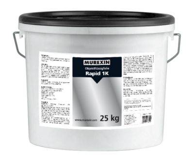 Murexin 1K Objekt folyékonyfólia Rapid, mely oldószermentes, gyorsan száradó, vízzáró, egykomponensű, tartósan elasztikus, hézag- és varratmentes kenhető szigetelő anyag. Kizárólag beltérben alkalmazható, hézagmentes szigeteléshez közvetlenül a kerámiaburkolatok alatt (pl.: zuhanyzókban, tusolókban, fürdőszobákban) a nyomás nélkül lefolyó víz ellen. Kb. 3 óra múlva burkolható.