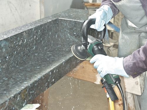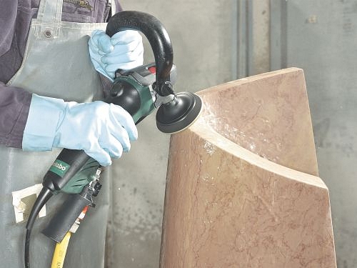 A Metabo új készüléke a gránit, márvány és egyéb kőzetfajták, illetve műkövek erőteljes nedves polírozására alkalmas, 1100 Wattos PWE 11-100 elektronikus nedvespolírozó, melynél a hálózati kábelbe épített életvédelmi relé gondoskodik a vizes üzemmódban megkövetelt fokozott biztonságról.