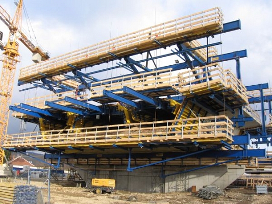 Háromcellás ferdebordás hídszerkezet épült szabadonbetonozó zsaluzókocsikkal