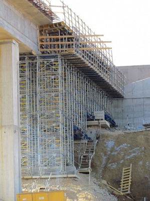 A nyitrai (Szlovákia) R1 autópálya 358,77 méter hosszú mederhídja az A-Híd Építő Zrt. kivitelezésében készült. Az építéshez Doka szabadonbetonozó zsaluzókocsit, Top50 fatartós falzsaluzatot, Staxo 100 alátámasztó állványt alkalmaztak. A háromcellás felszerkezetű híd nyílástávolságai: 52,77-3x85-51 méter, maximális magassága: 6 méter, a pályalemez szélessége: 26 méter, a szabadon betonozott zömök hossza: 5 méter.