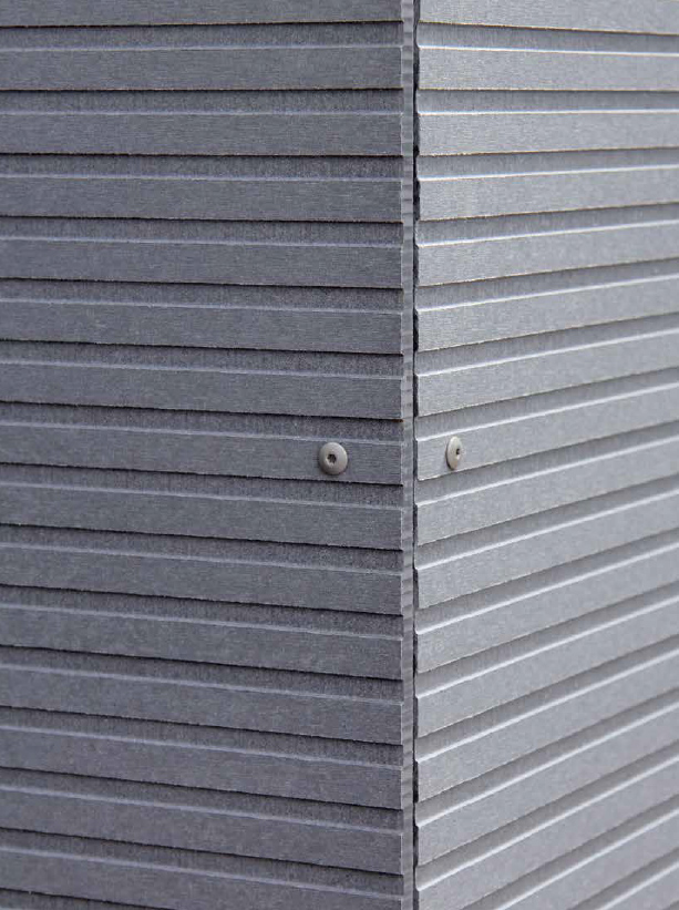 Az anyag felületén az évszakok változása és az évek múlása – a rostcement természetes öregedésének köszönhetően – finom nyomot hagy, így a homlokzat fokozatosan és szinte észrevétlenül változva jellegzetes patinát kap.