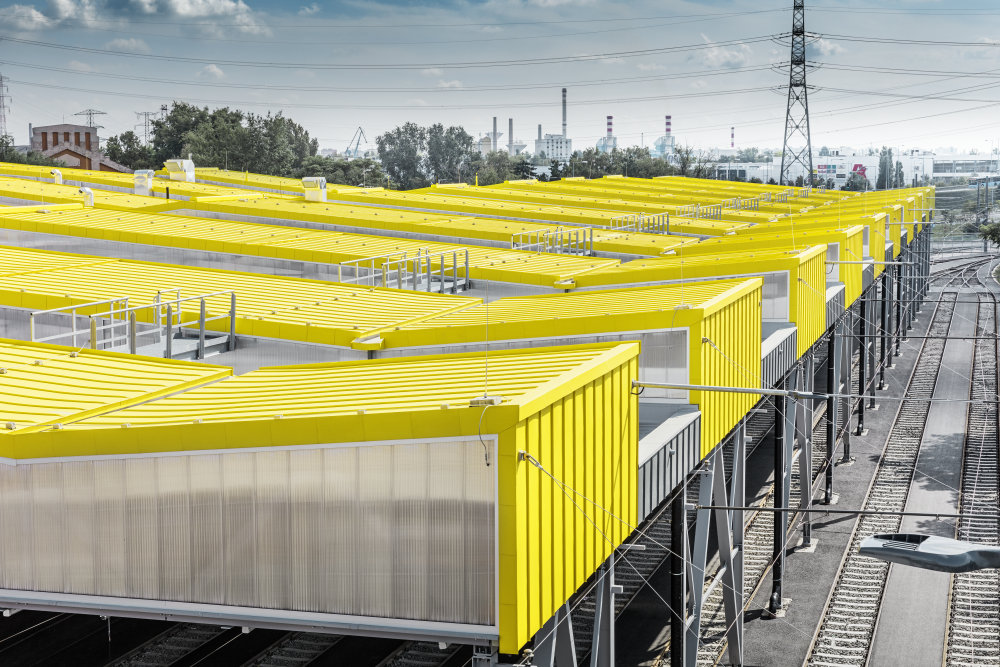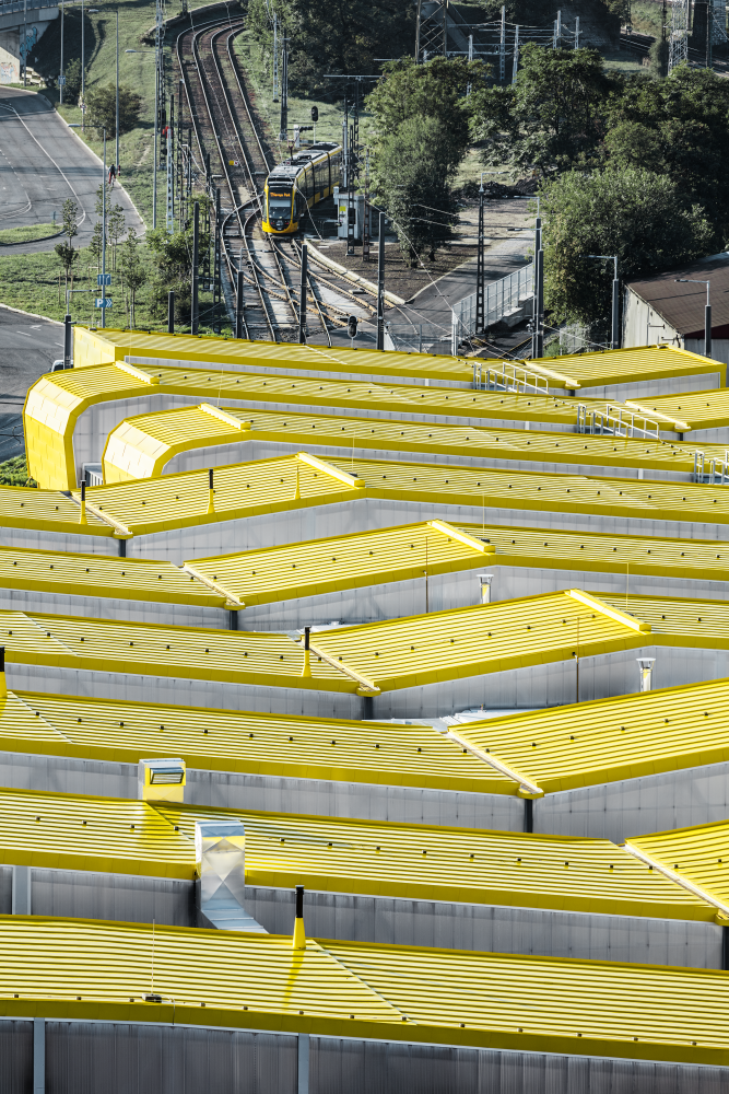 Az új budafoki kocsiszín épületének extravagáns „közlekedési sárga” színét a budapesti villamosok színe ihlette. Mindenki mást lát az 50 új villamosnak helyet adó épület különleges formájában: egyesek szerint egymás mellett parkoló villamosokra emlékeztetnek. Az épület tetőjét különleges sárga színű PREFA alumíniumburkolat fedi.