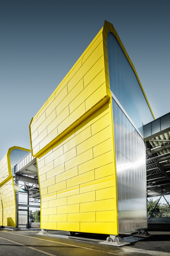 „Az épület tetőjének színesnek kell lennie, ez számomra az első pillanattól kezdve egyértelmű volt. A szín a koncepció fontos részét képezi. A városnak nem kell minden esetben szürkének lennie, egy szín meghatározó lehet a teljes környezet közérzete szempontjából. Mivel a budapesti villamosok „közlekedési sárgák”, így a kocsiszín számára is ezt a színt választottuk. A PREFA által bemutatott anyag tökéletesen megfelelt mind a technikai, mind pedig az esztétikai elvárásainknak, és biztosított volt az egyedi szín szállítási határideje és rendelkezésre állása is. További fontos szempont volt számunkra a szintén garantált hosszú anyagélettartam.” – indokolta az anyag- és színválasztást Takács Ákos építész, a kocsiszín építész tervezője, a budapesti CÉH ZRt. kreatív építész igazgatója, aki először dolgozott a PREFA anyagaival, de már most biztos benne, hogy nem utoljára.