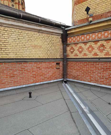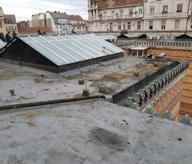 Az új rétegrend mechanikai rögzítése Ejot termékekkel történt, amelyet több ponton elkészített kihúzásvizsgálat előzött meg. A kivitelezés során a múzeum épületén lévő huzalbetétes üveg felülvilágítók üvegtábla-illesztési hézagainak tömítése is elkészült, ezzel megszüntetve egy újabb hibahelyet.