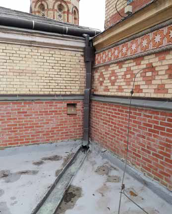 A közel százéves, műemléki védettségű épületszárny a pesti belvárosban található; itt kellett megoldani a hő- és vízszigetelés felújítását oly módon, hogy a zsinagóga napi többezer látogatója a munkálatokból a lehető legkevesebbet vegye észre. A kivitelezést végző Szakszig Kft. az ÉMSZ Év Tetője pályázatán a lapostető szekció kategóriadíját nyerte el idén ezzel a munkával.