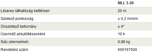 A mindentudó MLL 3-20 készülék a beltéri kiépítéseknél nyújthat nagy segítséget 360°-os vízszintes vonal megjelöléshez, beigazításhoz és szintezéshez. A kézi finombeállításnak köszönhetően a függőleges vonalakat pontosan el lehet helyezni.