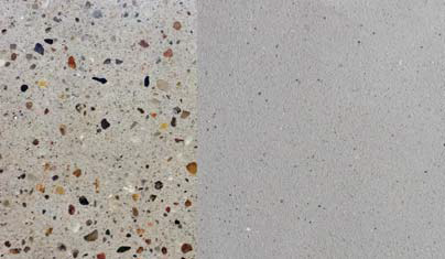 A csiszolás miatt láthatóvá válik a betonban lévő folyami kavics