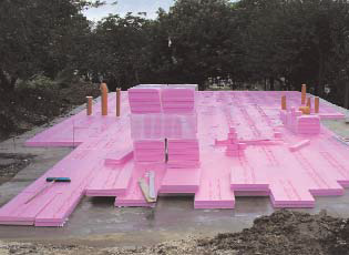 Ezért a legtöbb ház lemezalapra épül, melyek alá statikai számításokkal meghatározott nyomószilárdságú hőszigetelő anyagok helyezendők, többnyire formahabosított EPS- és XPS-termékek. Az Austrotherm Expert nyomószilárdsága meghaladja a 200 kPa-t, míg az XPS-habok 300-500-700 kPa értékkel is bírhatnak. Ezek az anyagok már képesek elviselni az egész épület súlyát. Az alkalmazott vastagság legalább 24 cm legyen, amit két rétegben fektetnek. Ezzel elkerülhető az átmenő hézag okozta hőhíd is.
