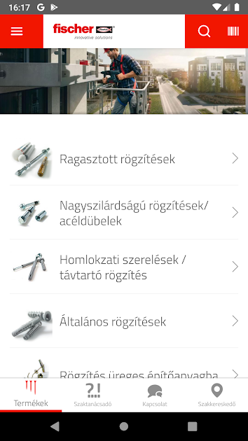 A Professional App rögzítéstechnikai gyorssegély a terepi munkához: a rögzítési megoldásokhoz szolgáló mobil útmutató az építkezés helyszínén nyújt hasznos információkat. A digitális ismertető segítségével az építkezés helyszínén meghatározhatók a megfelelő rögzítési megoldások, sőt, még az adott termékeket kínáló helyi kereskedőket is könnyen meg lehet találni. Az alkalmazás a kihívásokra kínált megoldásokat tekintve egészen összetett ajánlásra is képes: nemcsak egyszerű horgonyt, megfelelő dübelt segít választani, de akkor se jön zavarba, ha egy ragasztóból, menetes szárból és szitahüvelyből álló átfogó megoldásra van szükség.