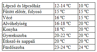 Az előbbi tényezők figyelembevételével kiszámítható, hogy egy helyiségben a norma alapján milyen hőmérséklet a legmegfelelőbb az embereknek. Általánosan a következő ajánlott hőmérsékletek érvényesek, láthatóak a normázott belső hőmérsékletek a DIN 4701-2-es táblázata alapján: