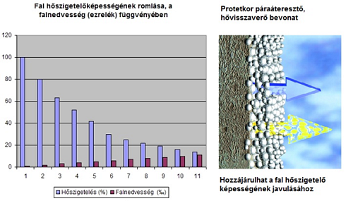 A falak nedvességtartalma jelentősen befolyásolhatja a hőszigetelés hatásfokát. A falak nedvességtartalmának csökkentésével javítható azok hőszigetelő képessége.