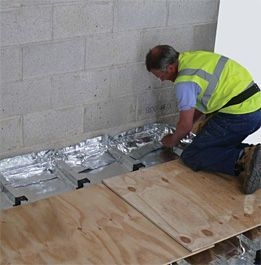 • padlón alkalmazva – aljzatra fektetett SuperQuilt multifóliára szerelt 50 mm magas tartólécváz és azon a padló: U=0,13 W/m2K.