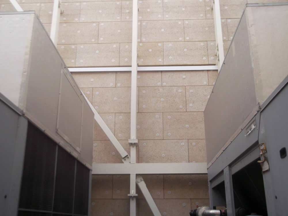 A kibővült számítógéppark működéséhez szükséges gépészet zajhatásának hangelnyelésről, hangcsillapításról a falak belső borításaként beépített Tektalan 037 A2 típusú építőlemezek gondoskodnak.