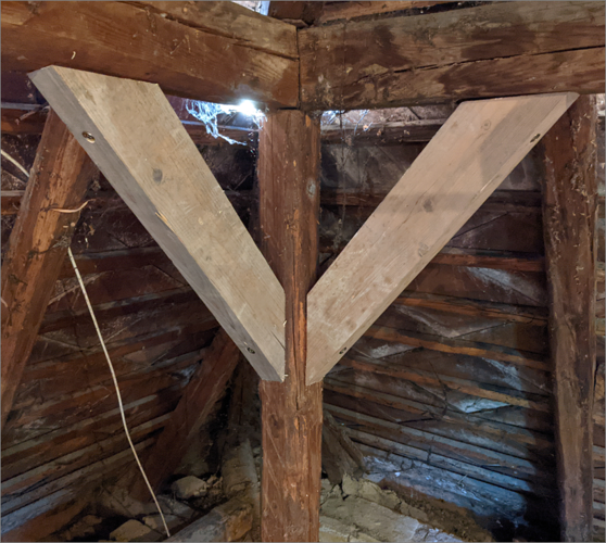 A tető vizsgálata során további „csontvázak estek ki a szekrényből”: ilyen volt például a szabálytalanul elbontott kémény, vagy a födémbe épített vadrács. Ezeken túl szinte mindenhol az idő múlásának romboló hatásaival szembesült a felújítással megbízott szakembergárda. A tetőbe számos helyen bele kellett nyúlni: először is könnyített betonaljzatot kapott, a szarufákat megerősítették a manzárd részen, könyökfákat és tetősík ablakokat építettek be.