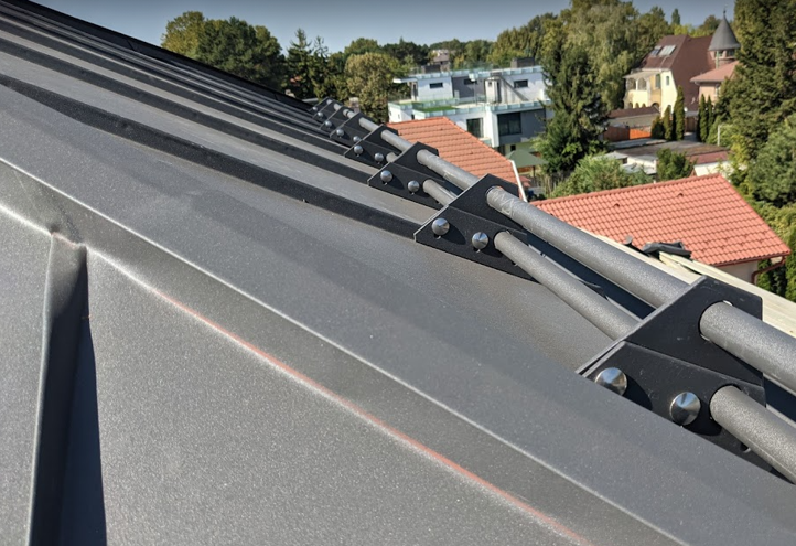 Mivel a PREFA kettős állókorcos és kiselemes rendszerű tetőket a villámvédelelmi rendszerben természetes levezetőként fogadja el a szabvány, ezért csak a felfogást és az ereszvonal alatti levezetést kell kiépíteni.