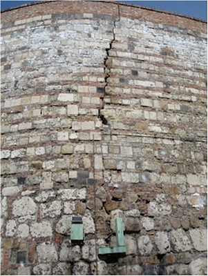 Az Esztergomi-rondella függőlegesen végigrepedt oldala