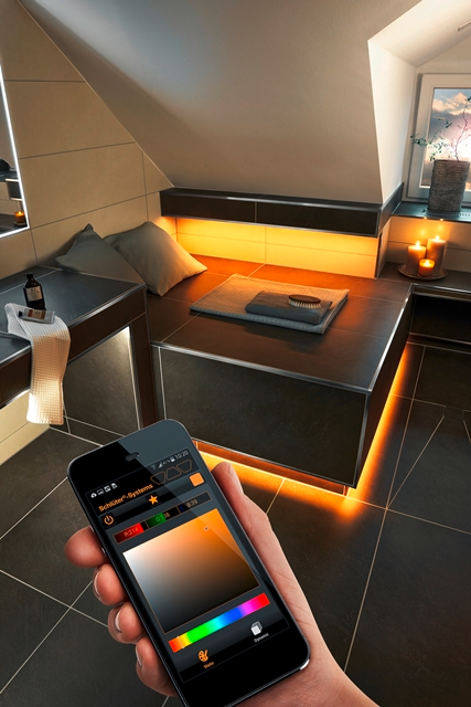 A modern világítástechnika kreatív és dekoratív téralkotásra is lehetőséget nyújt. A Schlüter-Liprotec LED-fényprofil-technikája bármilyen megvilágításra alkalmas, akár lágy pihentető fényre van szükség nyugalmi zónákhoz, akár semleges fényre munkaterületekhez, esetleg színes környezeti fényt szeretnénk. A Schlüter-Systems most számos intelligens újdonsággal bővítette fényprofil-technika programját: új szettekkel például gyorsan és biztonságosan készíthetők hátulról megvilágított előreugró falszakaszok (például falpanelek), de már applikáció is segíti az RGB LED-modulok kényelmes vezérlését.