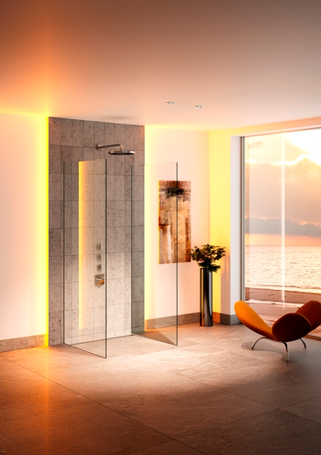 Az új Schlüter-Liprotec-WSK szettek lehetővé teszik a hátulról megvilágított előreugró falszakaszok egyszerű és gyors kialakítását. Választani lehet a kétoldalasan, illetve a körbefutó világítással megvilágított falkialakítás között. A kétoldalas megvilágításhoz 250 cm hosszúságú szett áll rendelkezésre, ami 70 vagy 128,5 cm szélességű konstrukciót tesz lehetővé. A körbefutó megvilágítású falszakasz formátuma 120×93 cm lehet. A világítás kialakítása során szabad kezünk van: a kereteket a megfelelő tartozékok kiválasztása adja meg. A meleg fehér, semleges fehér vagy színes, szabadon változtatható fénnyel mindenki megtalálhatja a kedvére való változatot. Az átfogó tartozékszettek a mindenkori mérethez igazodóan tartalmazzák az előre konfekcionált Schlüter-Kerdi-Board lemezeket, a hálózati adaptert, a kívánt fényhez igazodó LED-csíkot, valamint a szereléshez szükséges anyagokat.