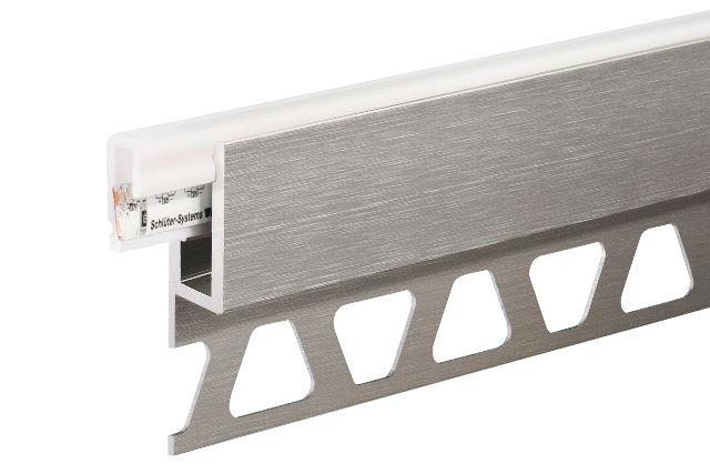 Az előreugró falszakaszokhoz összeállított szettek alapeleme az új, eloxált alumíniumból készülő Schlüter-Liprotec WSK profil. Köszönhetően annak, hogy a kábelcsatorna integrálva van a profil geometriájába, a LED-modulok beszerelése még egyszerűbbé vált. A két különböző diffúzor lemezzel való kombinálás révén közvetett vagy közvetlen világítás hozható létre. Intelligens kialakításának köszönhetően az új profil nemcsak kerámiával vagy természetes kőlapokkal burkolt előreugró falszakaszokhoz alkalmazható, hanem például szárazépítészeti elemekkel, így gipszkarton lapokkal is kombinálható.