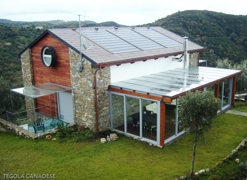 A Tegola Canadese energiatermelő, a tetők tervezésében teljes szabadságot nyújtó Tegosolar zsindelye rugalmas, ellenáll a fagynak, biztonsággal járható, tükröződésmentes, könnyen mozgatható és fektethető, öntisztuló, és mindezek mellett a hagyományos napkollektoroknál több energiát állít elő.