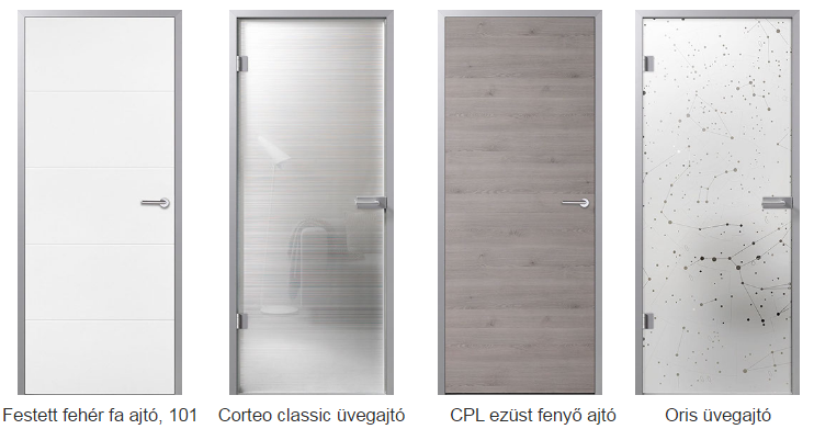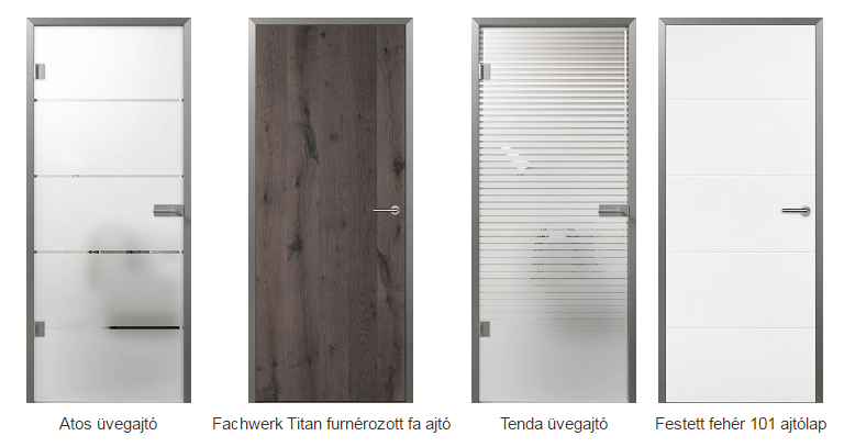 - egyszárnyú nyíló, kétszárnyú nyíló, falban és fal előtt futó tolóajtó, átmenő tok, valamint oldalvilágítós tok kivitelben is rendelhető;
