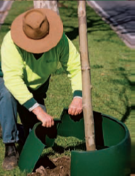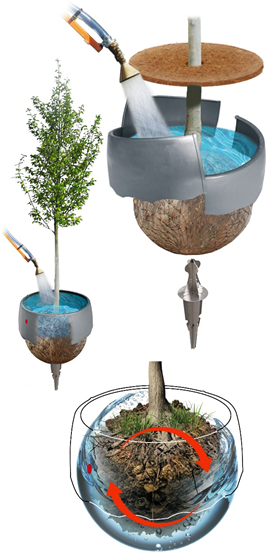 A szerkezet gyorsan, egyszerűen installálható, különleges rögzítőelemek és szerszámok használata nélkül. A 25 vagy 55 liter öntözővizet befogadni képes gallér anyaga 2 mm vastag polipropilén – rugalmasságából adódóan az esetlegesen beleütköző gyerekeket sem éri sérülés. A gallér belső felületére rovarcsapda is kenhető, jelentősen csökkentva ezzel a rovarkártevők okozta károkat.