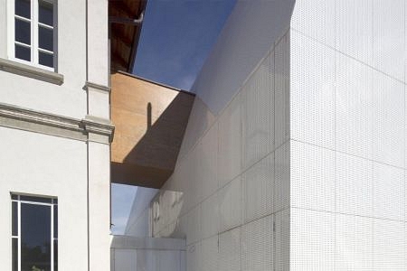 A ma könyvtárként üzemelő kápolna kiegészítő helyiségei számára látványos épület készült, mely az egységes felületi megjelenés érdekében mindenhol – a kápolna eredeti jellegével harmonizáló – perforált lemez burkolatot kapott, ami második bőrként takarja az épületet, még az ajtókat és ablakokat is. A megoldás 2011-ben Európai Építészeti Díjat kapott.