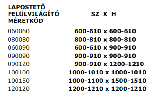 A VELUX kupolák méretkódja magába foglalja azt a nyílásméretet, amelyet a födémben ki kell alakítani, ezzel is segítve a tervező és a kivitelező munkáját. A födémnyílás kialakításában +1 cm tűrés megengedett.