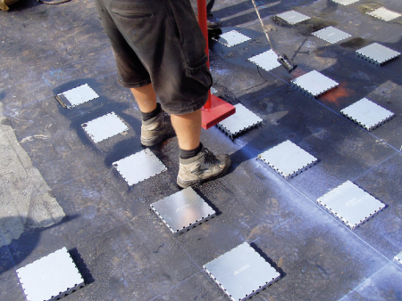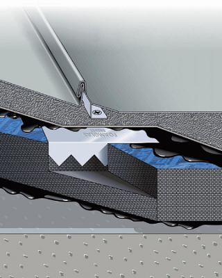 A Foamglas habosított üveg hőszigetelés és a rajta elhelyezett rögzítési rendszer egyedülálló megoldást kínál a fémtetők rögzítésére. A leragasztott Foamglas teljes felületére forró bitumenbe ragasztott bitumenes vékonylemezt fektetünk. Ezt követően fogazott U alakú rögzítőelemet préselünk a Foamglas hőszigetelésbe úgy, hogy a bepréselést megelőzően a bitumenes lemez felső felületét megolvasztjuk. A fércelemek a már bepréselt U-elemekhez rögzítve helyezhetők el, így kialakítva a hőhídmentes, stabil kapcsolatot. A fércelemek és az U-elem közé teljes felületen lángolvasztással rögzített bitumenes vastaglemezt fektetünk, lezárva ezzel a rétegrendet.