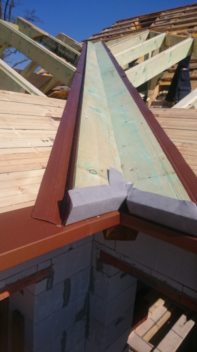 Nagy József csapata készítette a tető bádogos szerkezeteit is; ezek a Lindab rendszerelemeivel készültek. A vápa süllyesztve készült, a fóliacsatorna helyett lemezszegélyezést használtak.