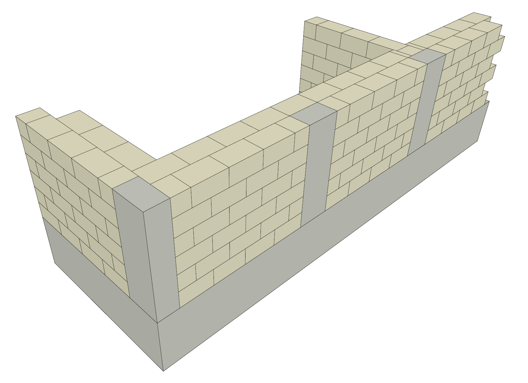 Pillérek méretezés szerinti távolságokra és keresztmetszetekkel, illetve főfalcsatlakozásoknál és falsarkoknál készülnek.