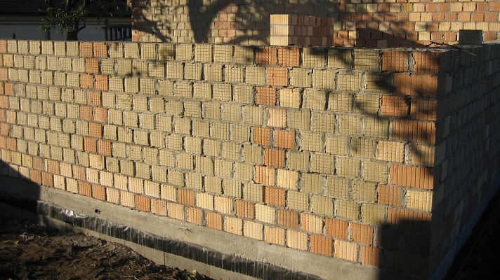 KERÁMIATÉGLA PILLÉREKKEL EGYÜTT FALAZOTT VÁLYOGFAL