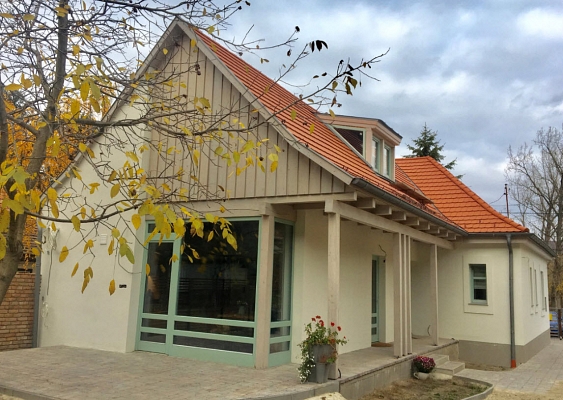 A kész épület. Az Év tetője 2018. pályázaton II. díjat nyert. Építész: Csóka Balázs DLA