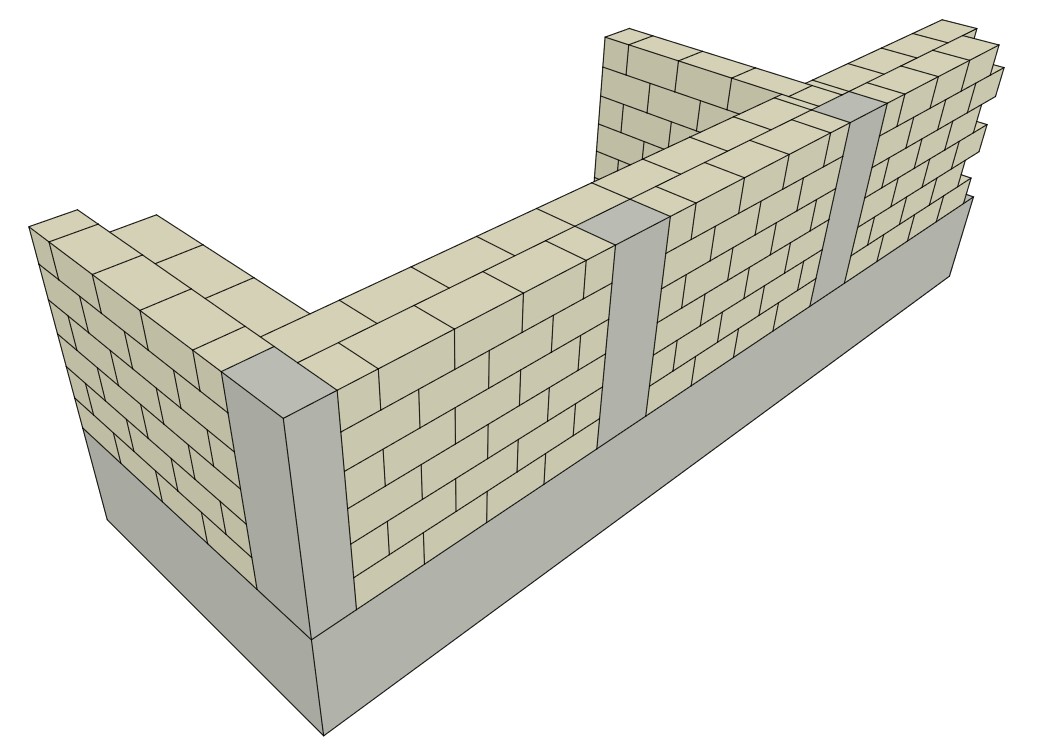 A pillérek főfalcsatlakozásoknál és falsarkoknál, illetve statikai méretezés szerinti távolságokra és keresztmetszetekkel készülnek. A gerendák nem hajolhatnak le, a kitöltő vályogfalazat nem vehető igénybe teherhordásra.