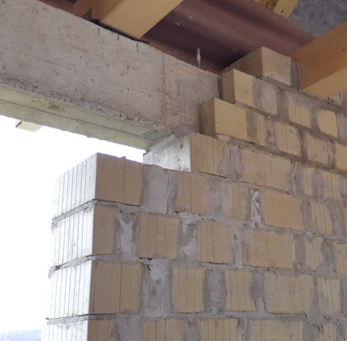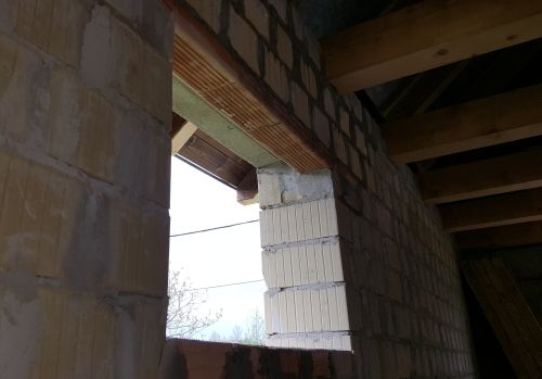 Kiegészítő áthidaló a vasbeton áthidaló előtti vályogréteghez