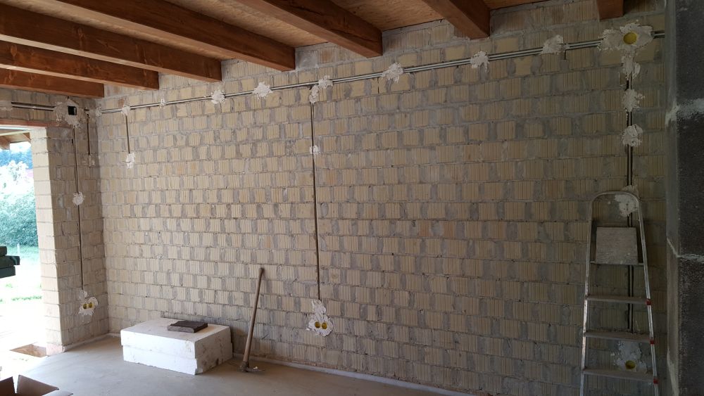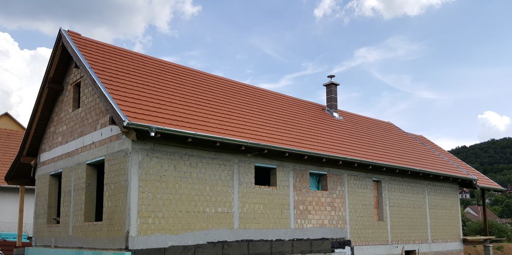 A szerkezetkész vályogtégla vázkitöltő falazatú épület (a fürdő résznél 30 cm-es B-FORM, az oromzatnál 18 cm-es B-FORM falazattal)