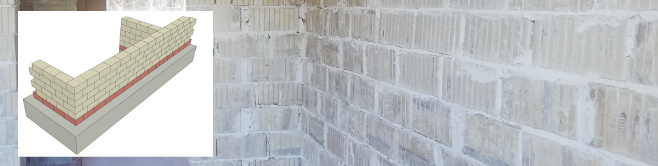 12 cm fölötti válaszfalak a hagyományos téglakötési szabályok alapján – vízszintes és függőleges teli fugával – falazhatók, acélhuzalos merevítés nélkül.