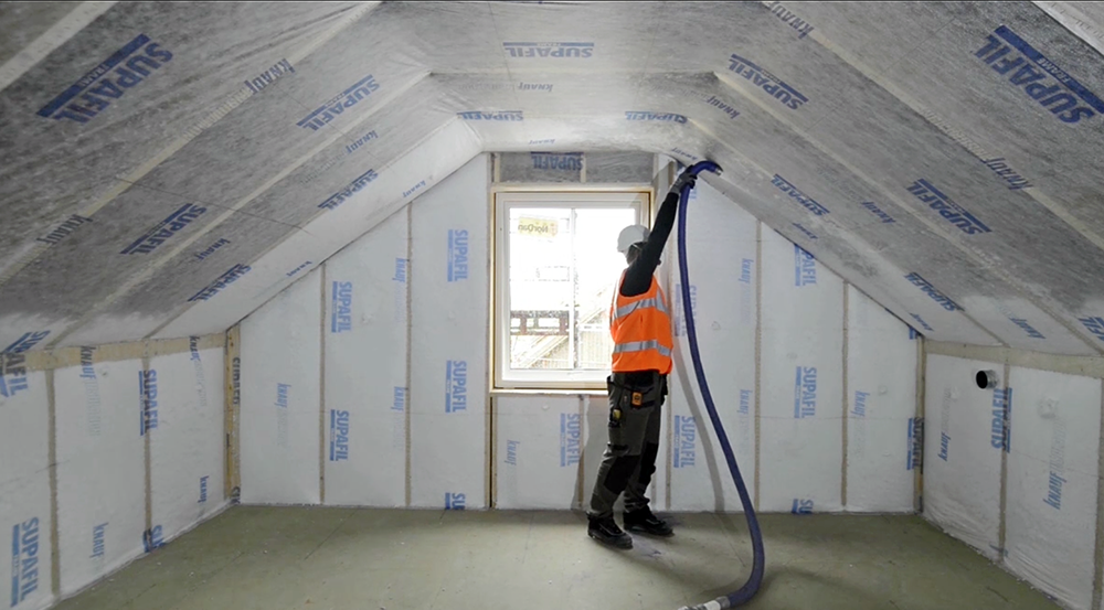 A Knauf Insulation Supafil Loft 045 és Supafil Loft Pro termékek felülről befújható épületszerkezetek, például – és elsősorban – padlásterek vízszintes vagy ferde felületei, valamint fűtött terek fölötti zárófödémek szigetelésére ajánlott. Alkalmazásuk olyan esetekben célszerű, amikor a padlástér hasznosítása nem szempont, vagy szilárd födém helyett a manapság egyre gyakrabban alkalmazott függesztett, szerelt gipszkarton mennyezet készül, amelyre nehéz lenne beépíteni gyári készítésű tekercses vagy táblás szigetelőanyagot.