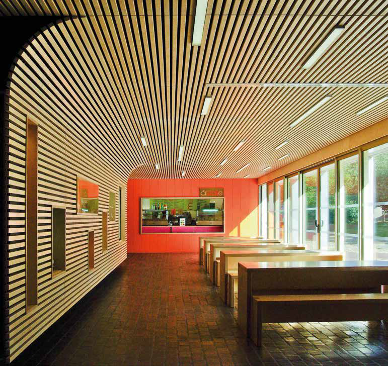 Az egyszerűen szerelhető Dalhem Ribba rendszer lécekből, egyedi tervezésű főtartókból és rögzítő klipszekből áll. Álmennyezetek és hagyományos falburkolatok készítésén túl íves és különleges geometriájú felületek kialakítására is alkalmas.