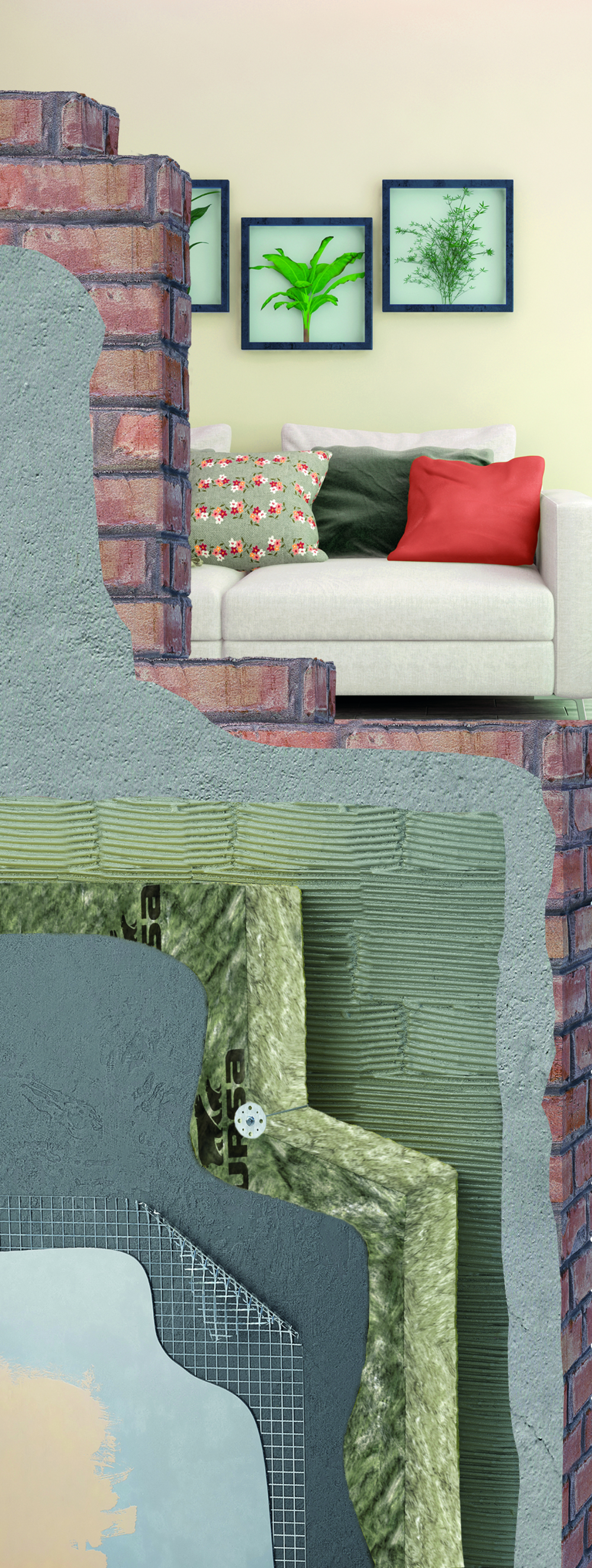 Az épületek külső fala igazi energianyelővé tud válni, ha nem fordítunk kellő figyelmet arra, hogy a környezettel folytatott gigászi küzdelmében megerősítsük egy hő- és hangszigetelő ásványgyapot réteggel, amely nem utolsósorban még tűzálló is. Vakolható homlokzati hőszigetelés alkalmazásával emellett kellemes belső lakóklíma hozható létre, hiszen a rétegrendbe beépített üveggyapot fontos szerepet játszik a nyári hővédelemben.
